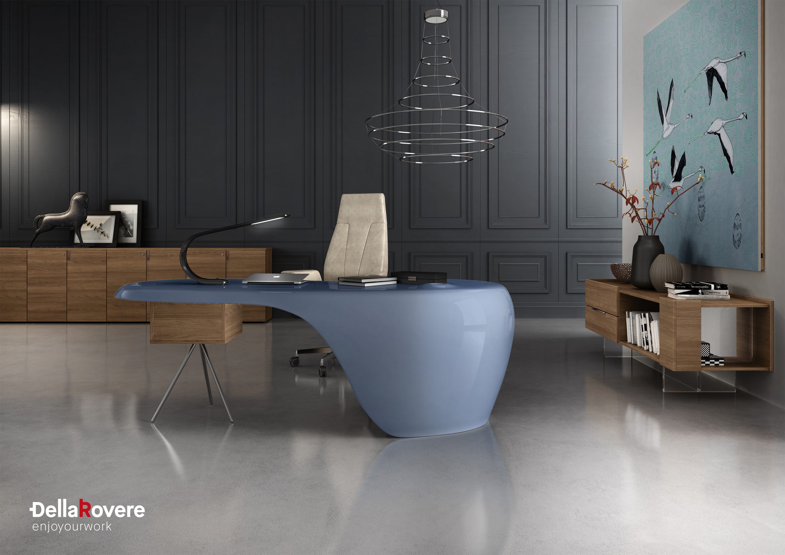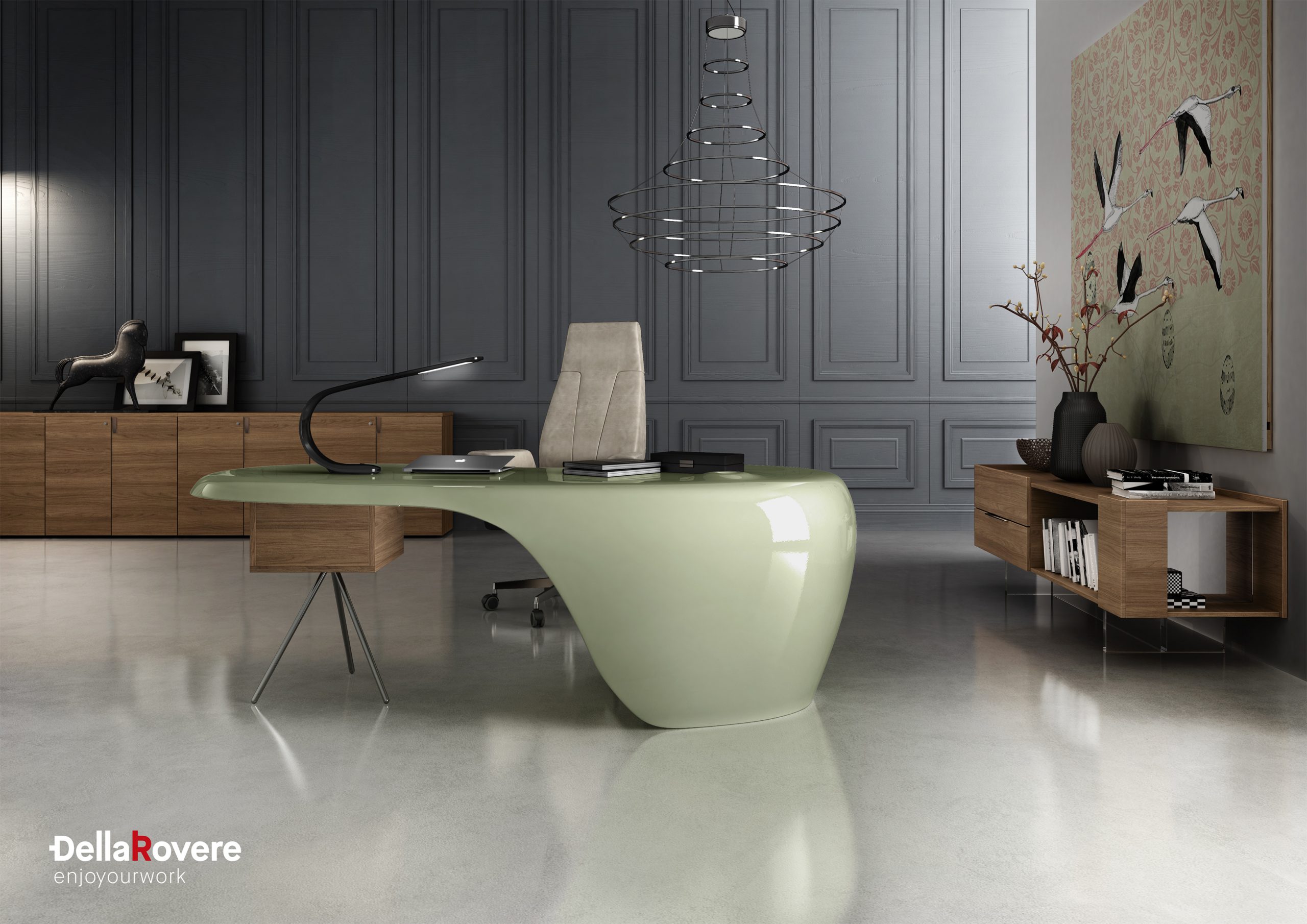 La scrivania UNO,collezione di arredo ufficio Della Rovere firmata da Karim Rashid.